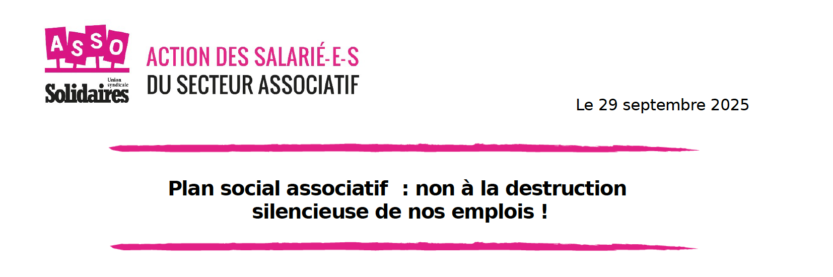 Nous travailleur·se·s associatif·ve·s, sommes présent·e·s dans le quotiden de tous le pays, parfois nous venons pallier les manquements de l'Etat. Nous représentons 1 emploi sur 10 (hors fonction publique) et nous sommes aujourd'hui plus que jamais en danger. Depuis janvier 2025, nous voyons pleuvoir les licenciements ou autres formes de ruptures de nos contrats de travail. Les grandes associations déguisent leur PSE et ne respectent pas nos droits.